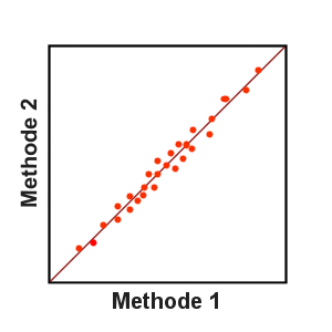 Messung der Präzision Messung der Richtigkeit Jetzt braucht man nur noch entsprechende statistische Verfahren, um die Ergebnisse der beiden Methoden (=Labortests) miteinander zu vergleichen. Ein klassisches Verfahren ist die Korrelationsanalyse: