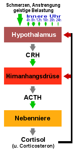 Cortisolspiegel "bemerken" und die Hirnanhangsdrüse wird vermehrt ACTH